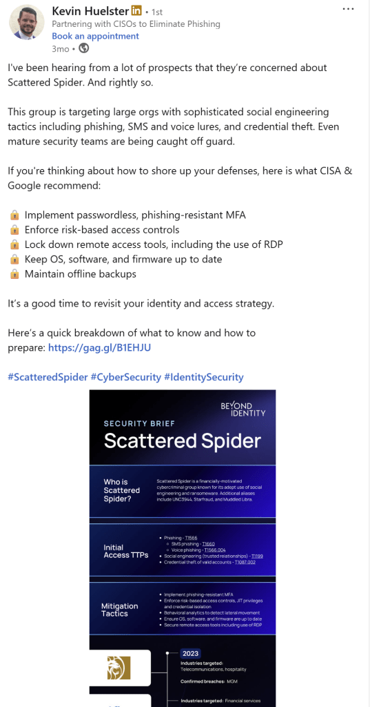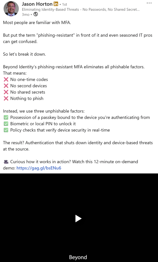 Launched Beyond Identity’s first employee advocacy program, empowering the sales team to share curated weekly posts of branded content.